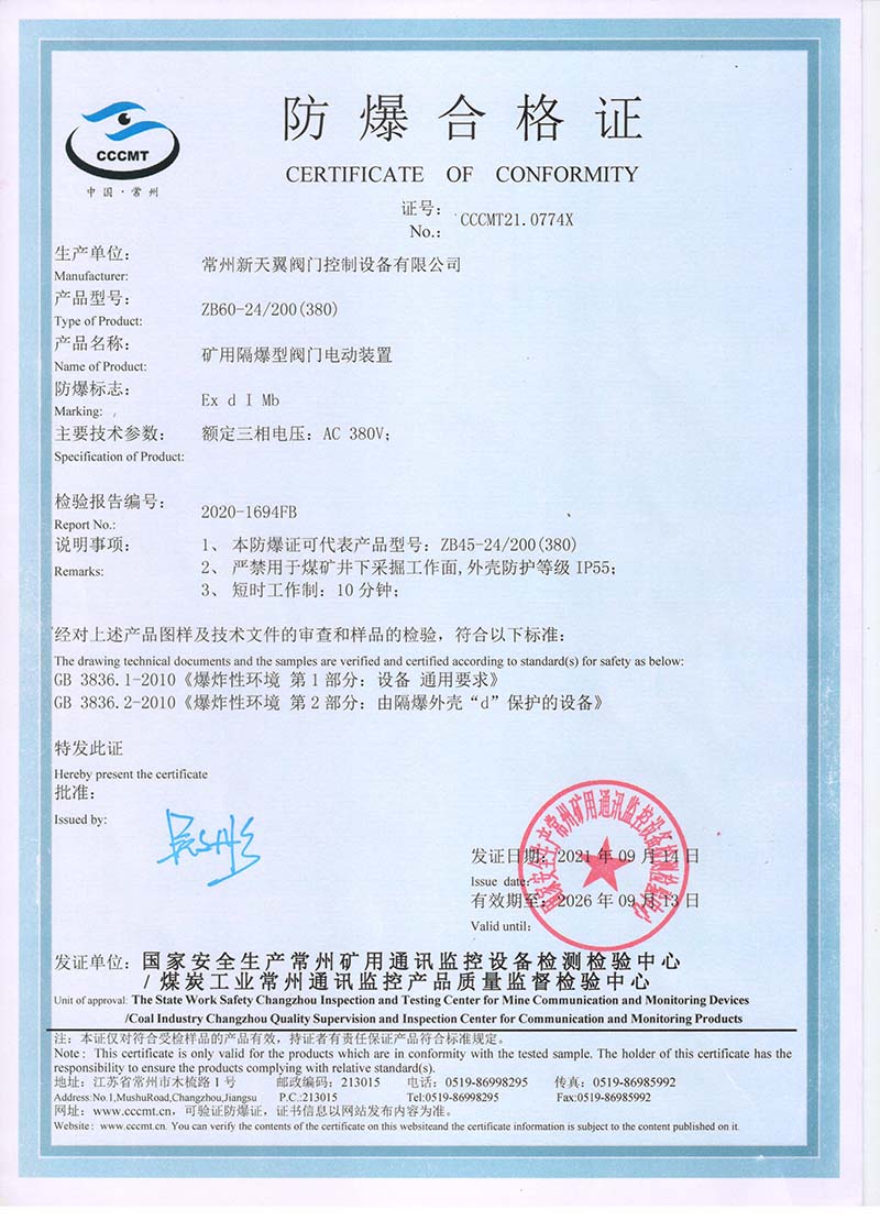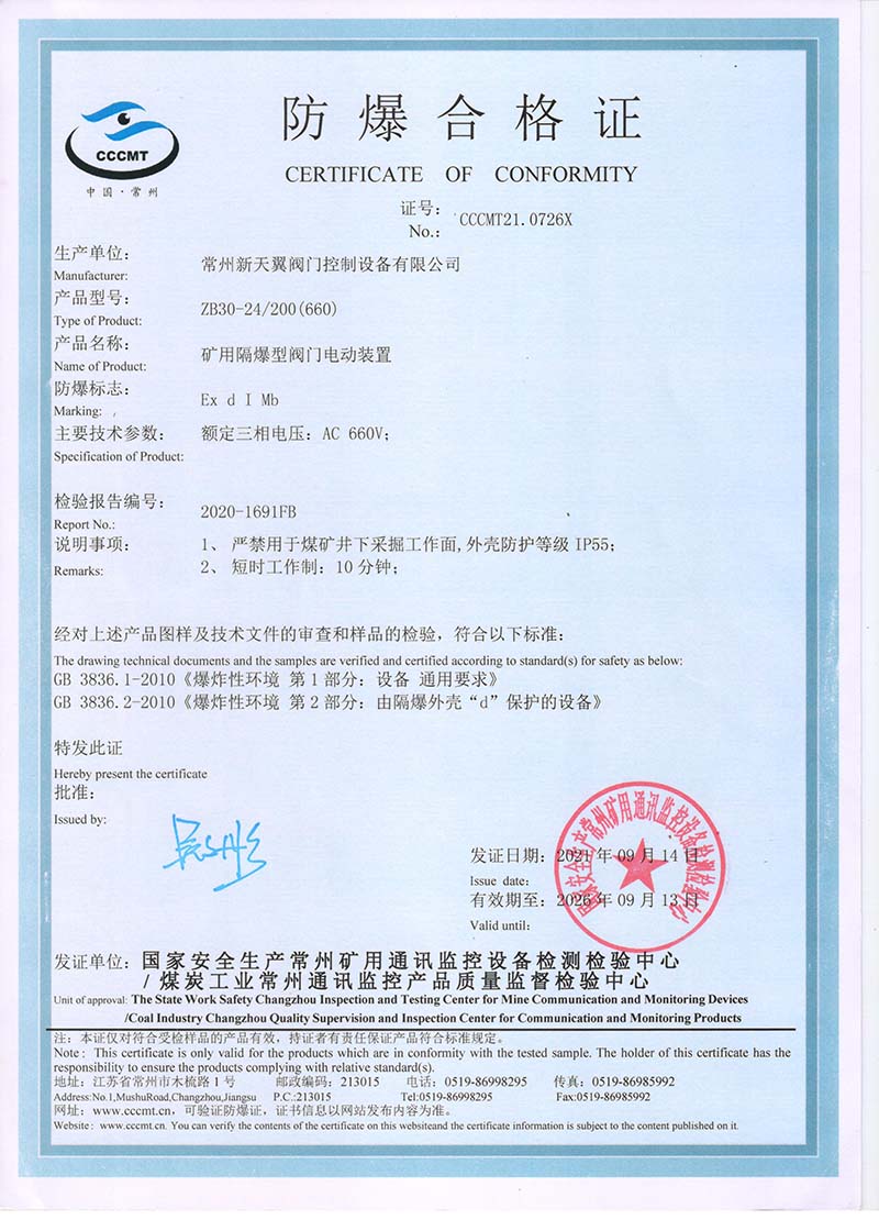 ZB20-24 200(660) 防爆合格證